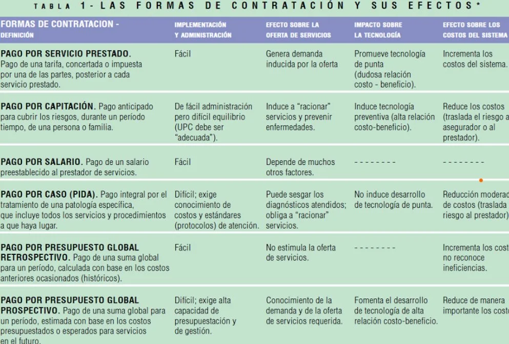 Las formas en que se paga a los proveedores de servicios de salud están relacionadas con un conjunto de factores: